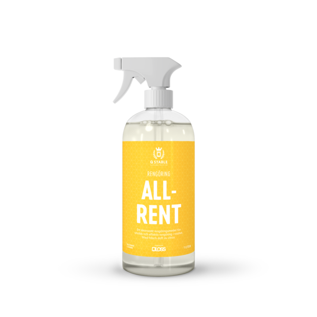 Q Stable Allrent är ett säkert och skonsamt rengöringsmedel som efterlämnar en mild och fräsch doft av citrus. Produkten rengör valda utrymmen eller föremål på djupet och löser effektivt bort fett, kalk, smuts och mögel.